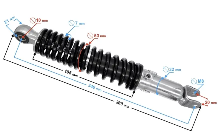- długość całkowita amortyzatora: 340 mm
