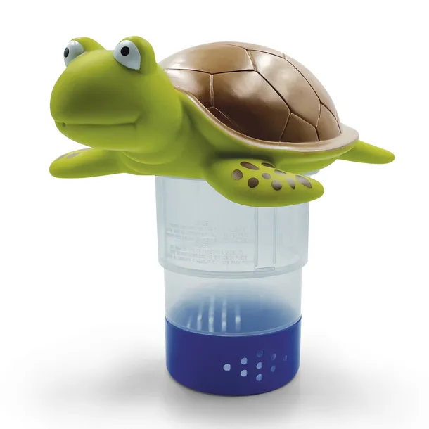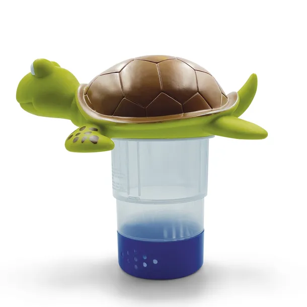 Pływający dozownik chloru Żółwik służący do powolnego rozpuszczania tabletek chloru oraz granulatów w basenach kąpielowych, Jacuzzi lub wannach Spa. Dozownik posiada płynną 5-o stopniową regulację przepływu co ułatwia kontrolę nad dozowaniem preparatów chemicznych. Wykonany jest z bardzo solidnego i mocnego tworzywa sztucznego ABS odpornego na chlor, promienie UV i korozję. To wygodne rozwiązanie do stałego i co najważniejsze równomiernego chlorowania i dezynfekcji całego zbiornika.