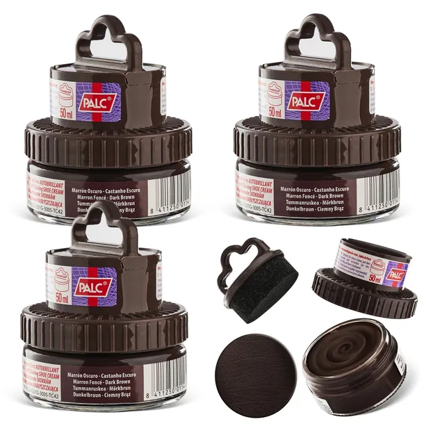 3x PALC PASTA W KREMIE 2W1 Z APLIKATOREM, KREM DO RENOWACJI OBUWIA, RENOWATOR DO SKÓR GŁADKICH, BARWNIK 50 ml CIEMNY BRĄZ (999992-3X/DARKBROWN)