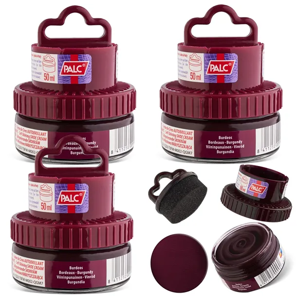 3x PALC PASTA W KREMIE 2W1 Z APLIKATOREM, KREM DO RENOWACJI OBUWIA, RENOWATOR DO SKÓR GŁADKICH, BARWNIK 50 ml BORDOWY (999992-3X/MAROON)