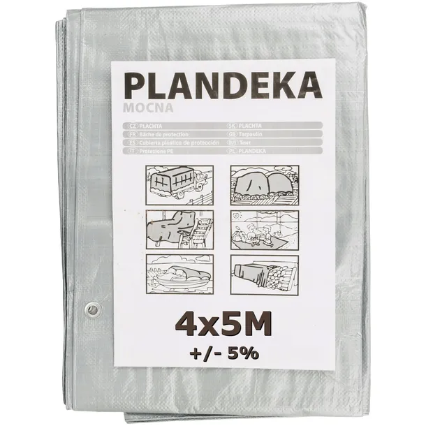 Plandeka srebrna WZMACNIANA GRUBA 4x5m 110g/m2