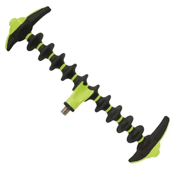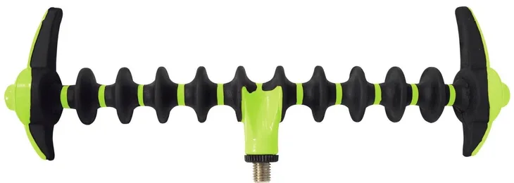 Pozioma podpórka feederowa. Gniazda na wędki wykończone są gumą, dzięki czemu są bezpieczne dla wędzisk. Po obu strona posiada zabezpieczenia przed zsunięciem wędziska w czasie brania. Co ważne są one obrotowe i można je wyregulować jeśli wędka skierowana jest w dół lub w górę. Podpórka umożliwia ustawienie wędziska pod optymalnym kątem oraz pewnie trzyma wędzisko. W sumie do dyspozycji mamy 11 pozycji mocowania wędki. Standardowy gwint pasujący do większości dostępnych na rynku podpórek oraz stojaków. Świetna cena!