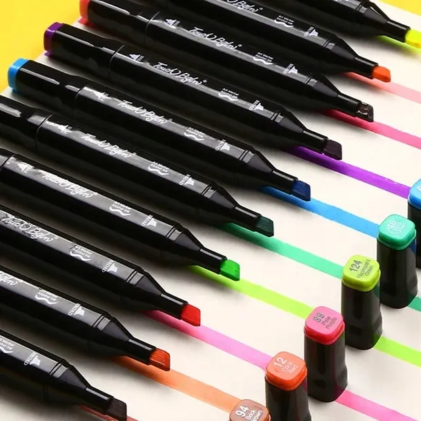 Zestaw 80 markerów w nasyconych, różnorodnych barwach to propozycja dla wszystkich, którzy rozpoczynają swoją przygodę z rysunkiem oraz dla tych, którzy rysują na co dzień. Doskonała pigmentacja alkoholowego tuszu zawartego w pisakach gwarantuje, że wykonane nimi rysunki będą nasycone, wyraźne i długo nie zblakną.