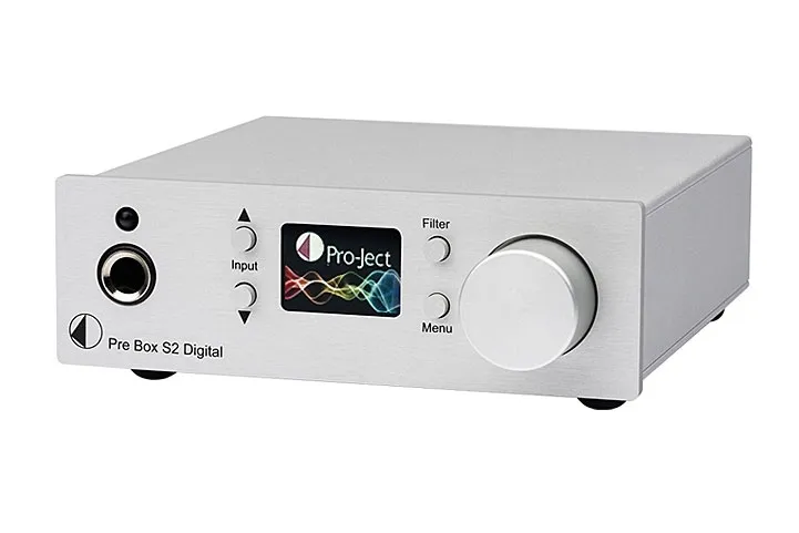 Pro-Ject Pre Box S2 Digital w kolorze srebrnym to cyfrowy, kompaktowy przedwzmacniacz, DAC i wzmacniacz słuchawkowy w jednym stworzony w konstrukcji dual-mono.
