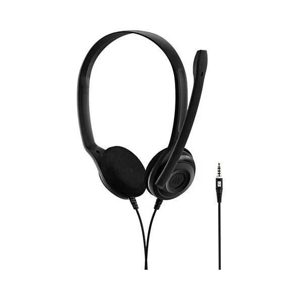 EPOS PC 5 CHAT - Słuchawka nagłowna z pałąkiem na dwoje uszu ze złączem Jack 3,5mm / 4 pola, mikrofon z wyciszaniem szumów, szerokie pasmo przenoszenia. Kompatybilna z urządzeniami wyposażonymi w gniazdo audio - Jack 3,5mm / 4styki.