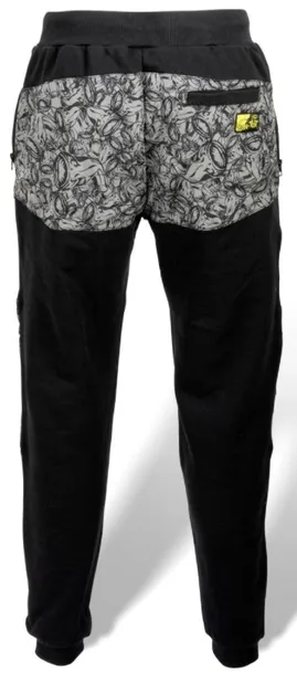 Wygodne joggery w stylowym wzorze Black Cat Design. Liczne małe sumy tworzą atrakcyjny wzór kamuflujący, który pasuje zarówno do wypraw nad wodę jak i codziennego noszenia.