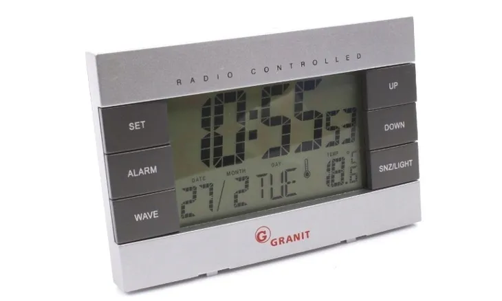 Zegar radiowy z podświetlanym wyświetlaczem LED Granit