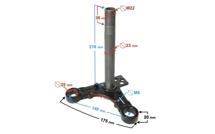 śr. lag- 27mm rozstaw lag (mierzony od środka otworów)- 140mm dł. całkowita(mierzona w środku sztycy)- 241mm śr. dolnej bieżni łożyska- 24mm