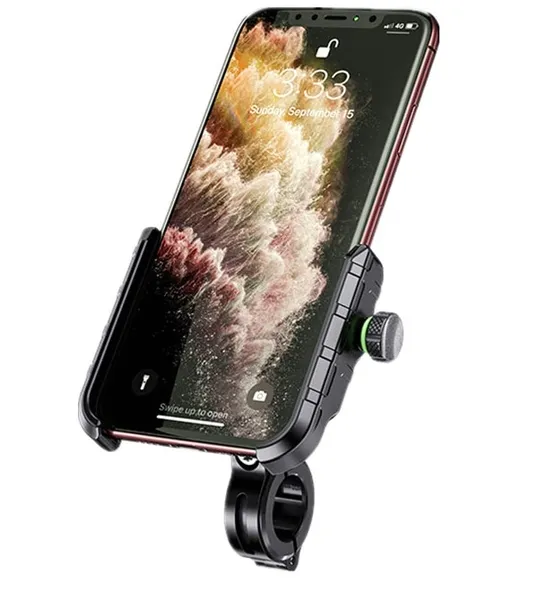 Uchwyt motocyklowy na telefon typ:R9-metal zapewnia nie tylko komfort, ale także bezpieczeństwo podczas jazdy. Główne elementy głowicy oraz ramienia uchwytu zostały zrobione z lekkiego lecz wytrzymałego aluminium, a śruby i prowadnice ze stali.