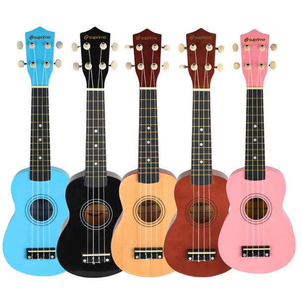 UKULELE SOPRANOWE DREWNIANE DLA DZIECI DO NAUKI GRY 5 KOLORÓW