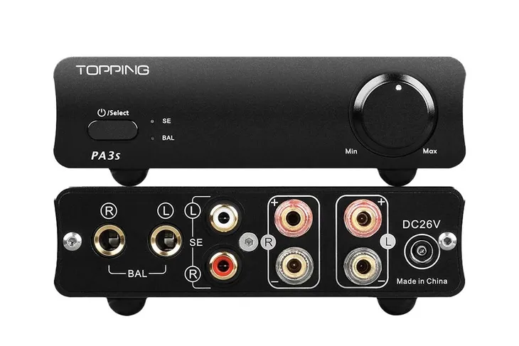 Topping PA3s to kompaktowy, zbalansowany, wzmacniacz klasy D. Prosty, mocny i niedrogi. Oparty jest na dwóch układach wzmacniacza Infineon MA12070, posiada dwa wyjścia zbalansowane i single-ended.