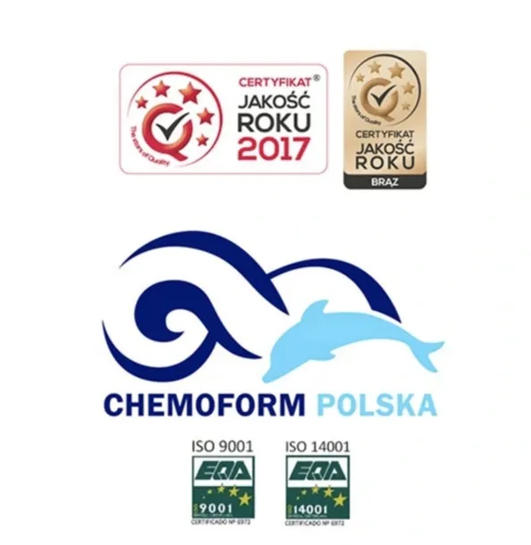 - produkty Chemoform AG posiadają certyfikaty ISO 9001 ISO 14001, Europejski Certyfikat Jakości® oraz Atesty PZH