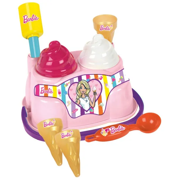 Zestaw "Stoisko z lodami" składający się z 9 elementów jest jednocześnie wiaderkiem mieszczącym wszystkie akcesoria oraz stanowiskiem do przyrządzenia piaskowych przysmaków lodowych.