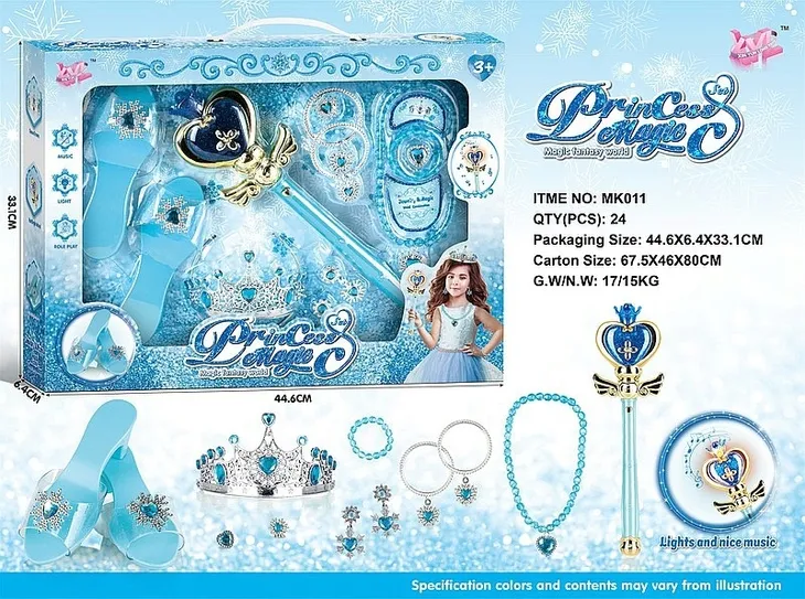zestaw piękności, spódniczka, buty, różdżka, diadem, biżuteria; W/B